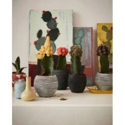 Dieses Pflanzgefäß hat die Ausstrahlung von Raphia. Es besteht aber aus hochwertigem Fiberglas und ist für den Innenbereich geeignet. Zudem ist es wasserdicht.